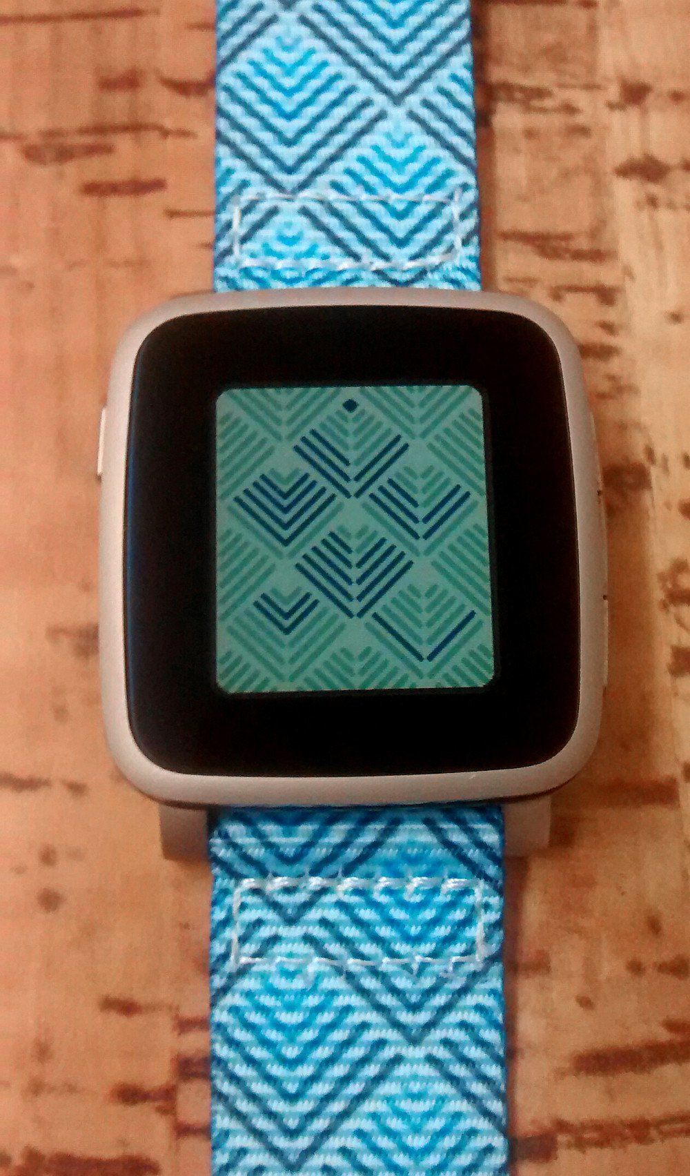 "I love the Vario Sky Pyramids strap - bright, colorful and and great design too. When I received this, it inspired me to produce a watchface based on the design. And here it is. The Pebble color palette can't match exactly, but I think they look good together.