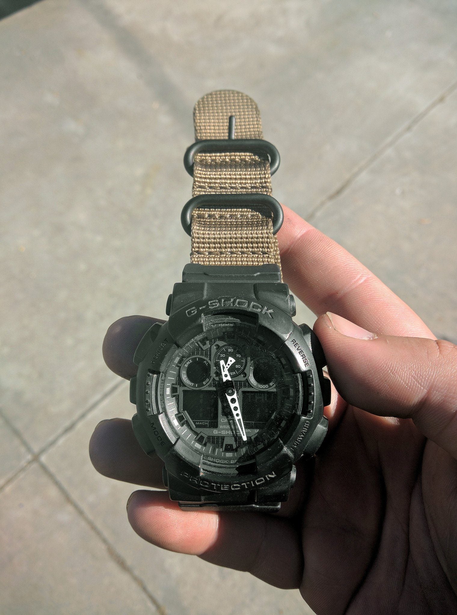 Casio G-Shock GA-100 with Vario's Ballistic Bronze Nylon Strap and G-Shock adapter by #varioclub member Derek